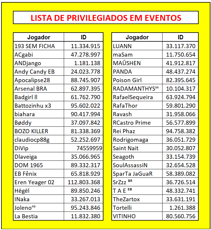 Somente os SuperGuerreiros (além do Staff do Reino) podem participar de todos os eventos disputando livremente o Top10.