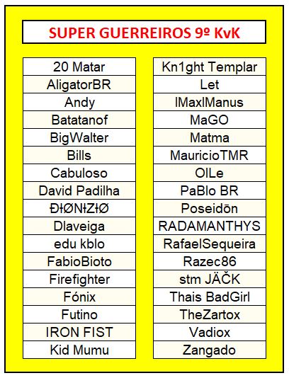 Para este KvK as Metas foram novamente estabelecidas e quem superou todas é chamado de SUPERGUERREIRO !!!